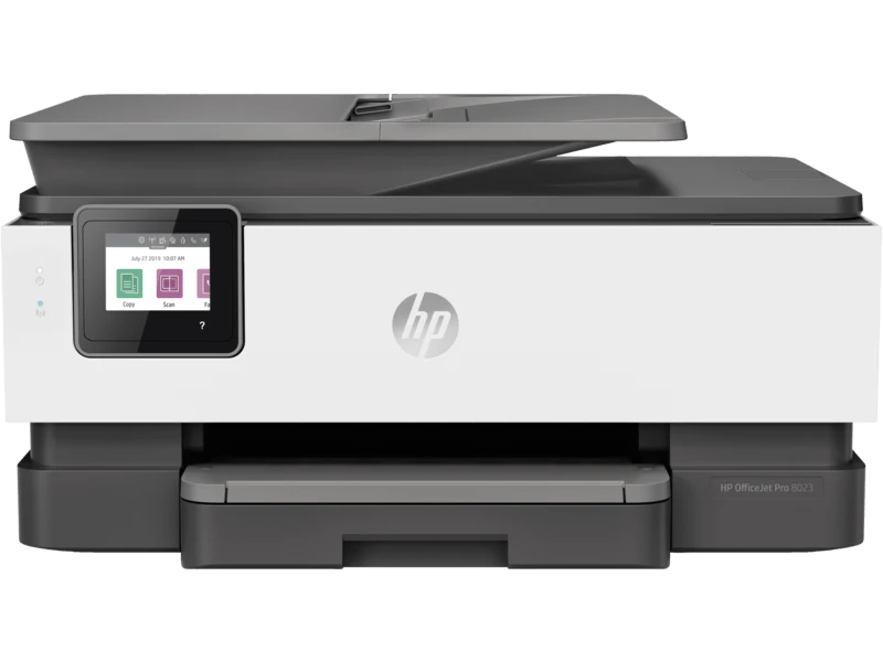Reliable HP OfficeJet Pro 8023 wireless all-in-one printer offering high-quality color printing, copying, scanning, and faxing. Supports A4 format with fast print speeds, wireless and USB connectivity, and smart mobile printing. Ideal for home and small office use, delivering sharp documents and vivid colors with efficient ink usage.