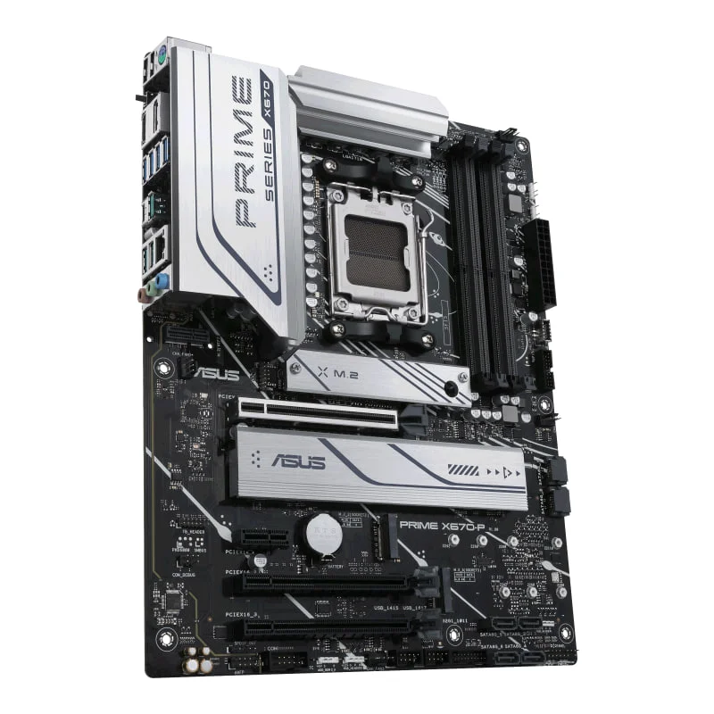 ASUS PRIME X670-P is an advanced ATX motherboard powered by the AMD X670 chipset, supporting the latest AM5 socket and Ryzen 7000 processors. It offers support for up to 128GB DDR5 RAM, four ultra-fast M.2 slots with PCIe 5.0, and integrated Wi-Fi 6 for high-speed wireless connectivity. Designed for builders and enthusiasts, it features robust power delivery, efficient cooling, HDMI & DisplayPort output, and ASUS 5X Protection for ultimate durability and performance.