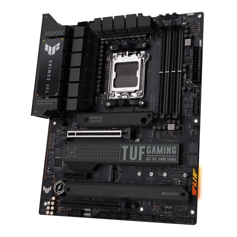 The Asus TUF GAMING X670E-PLUS motherboard is designed for those who demand top-tier performance and durability. Built for AMD Ryzen 7000 series processors, this motherboard features the latest AMD Socket AM5 and supports DDR5 memory up to 128GB for extreme speed and efficiency. Whether you’re building a gaming rig or a high-performance workstation, the PCIe 5.0 support provides unparalleled bandwidth for next-gen GPUs and storage devices. With 4 x M.2 slots and 6 x SATA 6Gb/s ports, the TUF GAMING X670E-PLUS offers abundant storage options for fast data access. Wi-Fi 6E and 10Gb Ethernet deliver ultra-fast and stable networking, perfect for competitive gaming, streaming, and data-intensive tasks. The AMD X670E chipset ensures excellent power delivery, system stability, and support for cutting-edge technology. With military-grade components, Aura Sync RGB lighting, and advanced cooling solutions, the TUF GAMING X670E-PLUS is built to withstand demanding environments while providing outstanding performance. Future-proof your system with the Asus TUF GAMING X670E-PLUS motherboard for high-end gaming, content creation, and professional workstations.