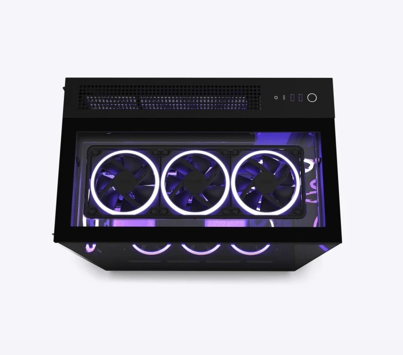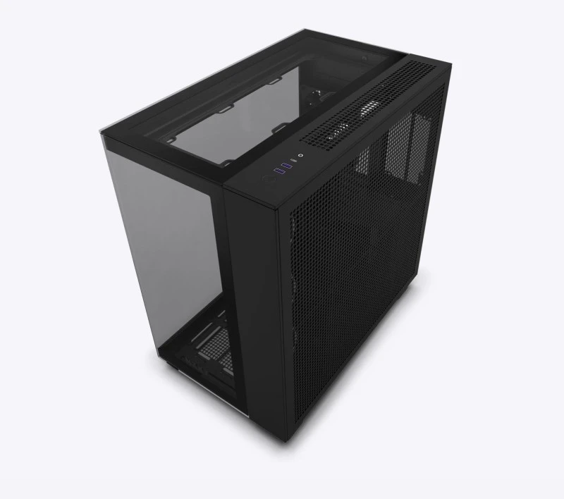 NZXT H9 Elite Premium Mid-Tower case in black features a dual-chamber design for superior airflow and tidy cable management. Equipped with tempered glass panels, customizable RGB lighting, and extensive liquid cooling support including up to 360mm radiators. Spacious interior supports ATX, Micro-ATX, Mini-ITX motherboards, multiple storage drives, ideal for gaming and enthusiast builds.