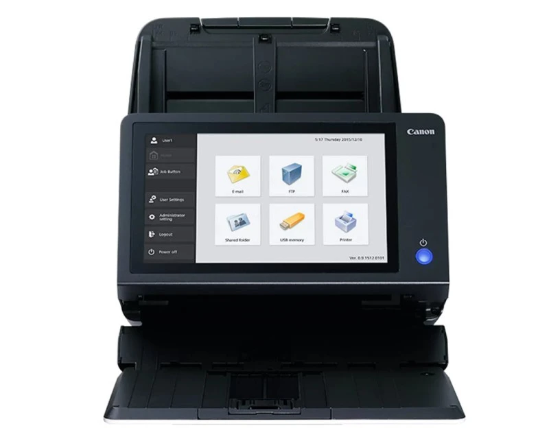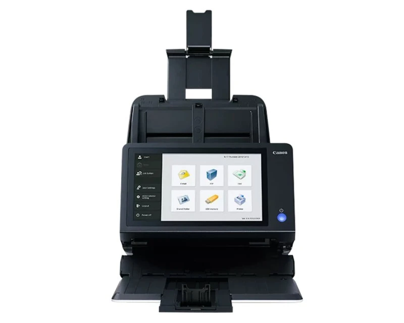 Canon ScanFront 400 is a standalone A4 network scanner offering up to 45 pages per minute (90 images per minute duplex) with a 60-sheet ADF and exceptional reliability for high-volume scanning. Featuring a large 10.1″ touchscreen, USB 2.0 and Gigabit Ethernet connectivity, it enables PC-free routing to email, FTP, USB, network folders or printers. With intelligent image processing, long document mode (up to 3 metres), passport support, double-feed detection, and folio scanning, it's ideal for professional environments like banking, healthcare, and legal