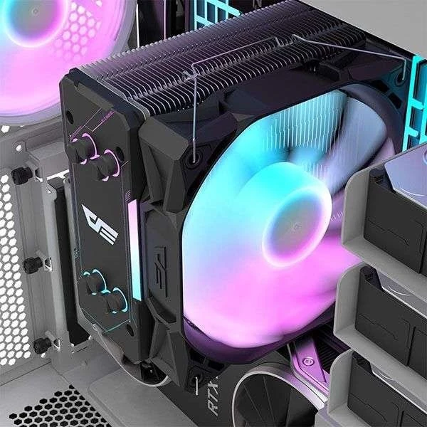 DarkFlash S11 Pro is a high-performance tower air cooler featuring a 120 mm PWM fan with speeds from 800–1800 RPM, engineered ARGB lighting, and four direct-contact copper heatpipes. Delivering 73.6 CFM airflow and 2.12 mm H₂O static pressure, it ensures efficient heat dissipation and quiet cooling (28 dBA). Compatible with modern Intel and AMD sockets, perfect for gaming and productivity builds