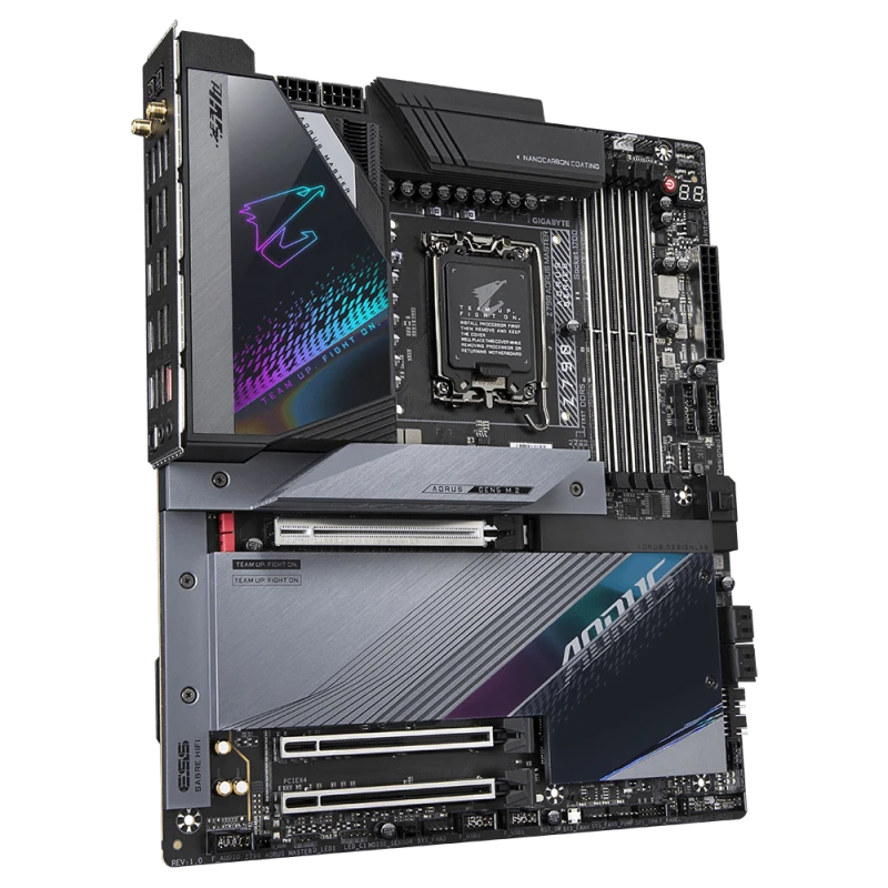 The Gigabyte Z790 AORUS MASTER LGA1700 E-ATX motherboard offers cutting-edge performance and features for power users, gamers, and content creators. Powered by the Intel Z790 chipset, it supports the latest Intel 12th and 13th Gen CPUs for superior processing power. With 4 DDR5 DIMM slots, supporting up to 192GB of high-speed memory, it delivers outstanding multitasking and gaming performance. The motherboard supports PCIe 5.0 for ultra-fast data transfer, along with Dual M.2 slots for lightning-speed storage options. 10Gb Ethernet and Wi-Fi 6E ensure seamless and ultra-fast connectivity for demanding applications. Designed with RGB Fusion 2.0 for customizable lighting and Smart Fan 6 for efficient cooling, the Z790 AORUS MASTER ensures reliability and longevity, even under the most intense workloads. Ideal for enthusiasts looking to build a high-performance, future-proof system.