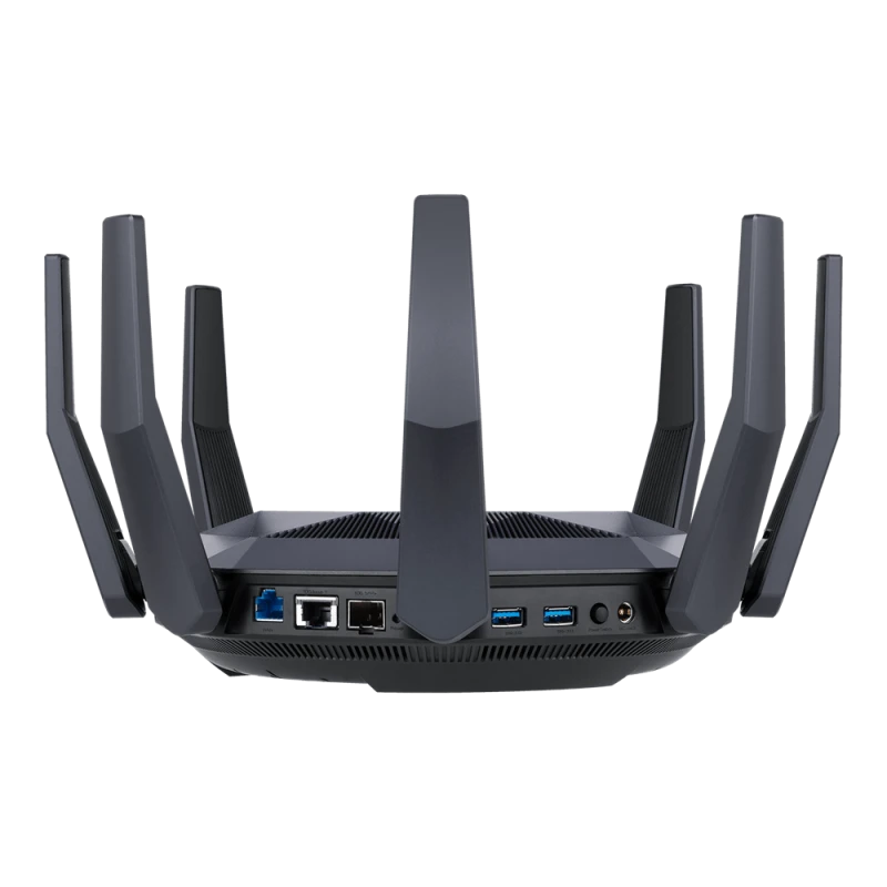 ASUS RT-AX89X is a high-performance AX6000 dual-band WiFi 6 router with 12 streams, offering speeds up to 6000 Mbps. This router provides exceptional wireless coverage and speed, making it perfect for gaming, streaming, and high-demand networks. Featuring dual 2.5G ports for ultra-fast wired connections, it is ideal for bandwidth-intensive applications. With 12 streams, you can connect multiple devices simultaneously without compromising speed or performance. The router supports the latest WiFi 6 technology for improved capacity, reduced latency, and better efficiency across your home or office network. Secure your network with WPA3 encryption, AiProtection Pro, and advanced parental controls, ensuring safety for all connected devices.