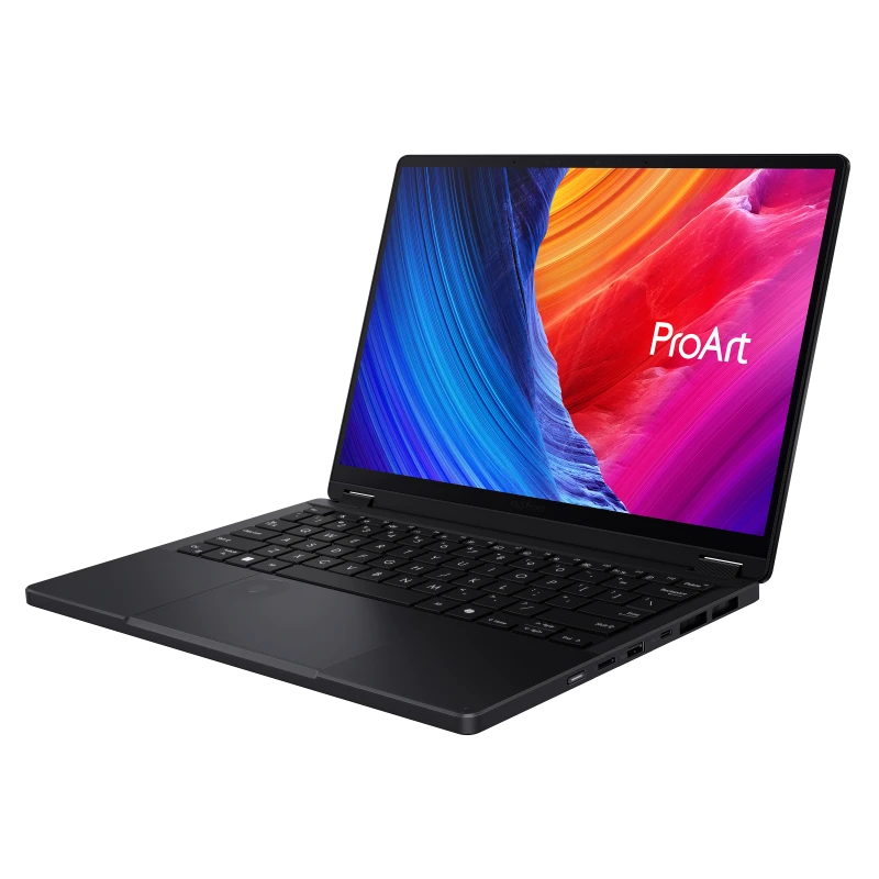 Meet ProArt PX13 – your go-to 13-inch convertible laptop, designed to effortlessly switch between forms, ready to fuel your creative passion whenever inspiration strikes. Its OLED touchscreen ensures precise color accuracy for flawless proofing, while versatile I/O ports seamlessly connect all your peripherals. This NVIDIA® Studio-validated laptop packs a GeForce RTX™ 40 Series Laptop GPU, providing powerful graphics and 321 TOPS AI performance. Additionally, it features up to a 50 TOPS AMD Ryzen™ AI 9 HX 370 processor, delivering exceptional processing power. With AI-enhanced creative features, military-grade toughness, and a long-lasting battery, ProArt PX13 transforms any setting into your studio.