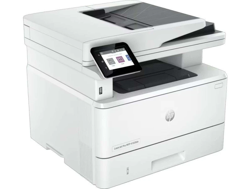 Boost office productivity with the HP LaserJet Pro MFP 4103fdn, a reliable A4 monochrome laser printer offering fast 40 pages per minute print speed. Designed for efficient workflows, it combines print, scan, copy, and fax functionalities. Enjoy automatic duplex printing, a powerful processor, and robust security features. Perfect for small to medium-sized businesses needing high-volume performance, clear text output, and seamless connectivity with Ethernet and USB options. Energy-saving and easy to manage, this all-in-one printer delivers sharp prints with 1200 x 1200 dpi resolution.