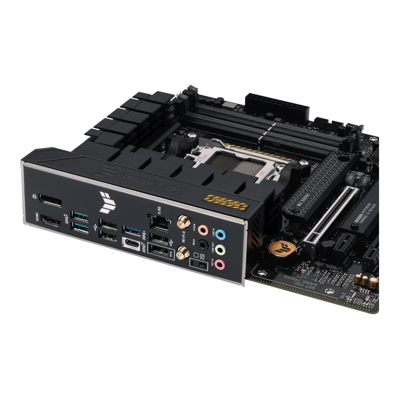 ASUS TUF GAMING B650M-PLUS WIFI takes all the essential elements of the latest AMD Ryzen 7000-series processors and combines them with game-ready features and proven durability. Engineered with military-grade components, an upgraded power solution and a comprehensive cooling system, this motherboard goes beyond expectations with rock-solid and stable performance for marathon gaming. TUF GAMING motherboards also undergo rigorous endurance testing to ensure that they can handle conditions where others may fail. Aesthetically, this model incorporates rugged off-black and geometric design elements to reflect the dependability and stability that defines the TUF GAMING series.