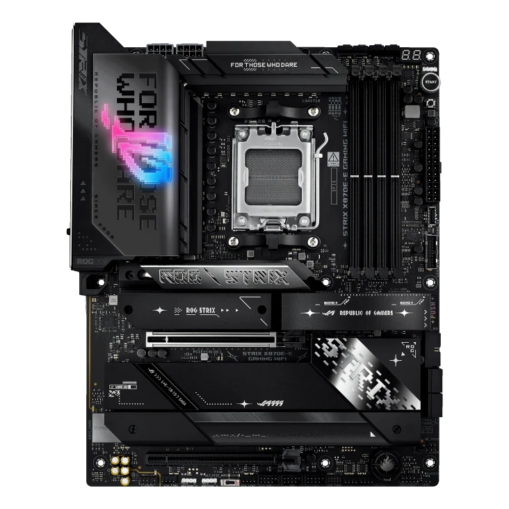 When only the fastest will do, a Strix X870E/X870 motherboard delivers. With USB 4.0 onboard along with robust overclocking¹ capabilities, featuring faster dual-channel DDR5 memory support, AMD EXPO™ technology and PCIe® 5.0 support for both graphics and NVMe, you can play the most demanding games and deliver your biggest projects with the revolutionary performance of an AMD X800-series motherboard and AMD Ryzen™ 9000, 8000, and 7000 Series processors.