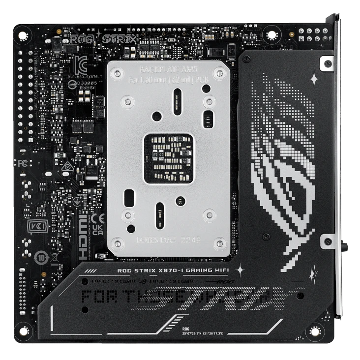 The ASUS ROG STRIX X870-I GAMING WiFi Mini-ITX motherboard is designed for compact high-performance AMD AM5 builds. Featuring the latest X870 chipset, it supports DDR5 memory up to 96GB at 8400+ MT/s, 2x M.2 Gen5 slots for ultra-fast storage, PCIe 5.0 for top-tier GPUs, and next-gen connectivity with Wi-Fi 6E and USB 3.2. Ideal for enthusiasts building mini-PCs without compromising on power.