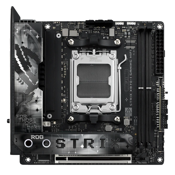 When only the fastest will do, a Strix X870E/X870 motherboard delivers. With USB 4.0 onboard along with robust overclocking¹ capabilities, featuring faster dual-channel DDR5 memory support, AMD EXPO™ technology and PCIe® 5.0 support for both graphics and NVMe, you can play the most demanding games and deliver your biggest projects with the revolutionary performance of an AMD X800-series motherboard and AMD Ryzen™ 9000, 8000, and 7000 Series processors.