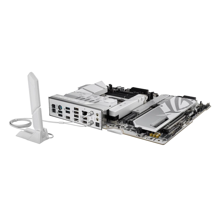 The ROG Maximus Z890 Apex fully supports Intel® Core™ Ultra processors (Series 2). Precision-engineered for supreme overclocking, it carries the legacy of the series forward into a new generation. With exceptional power delivery and a two-slot DDR5 memory layout, overclockers can meet and exceed their ambitions for record-breaking CPU and memory performance. For those who favor lighter colors for the aesthetics of their build, the ROG Maximus Z890 Apex features a cobble-gray surface, polished metallic accents, sleek contours and a predominantly silver palette.
