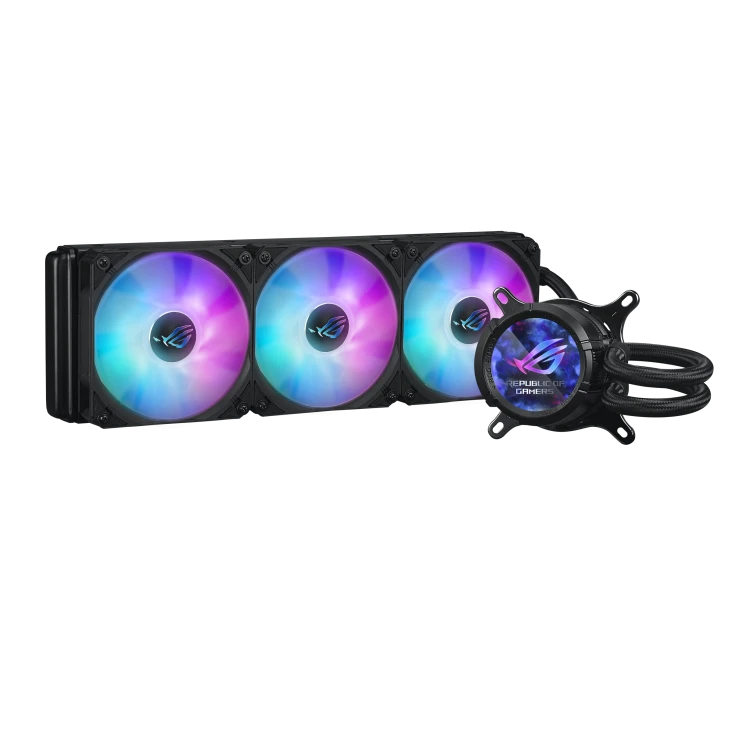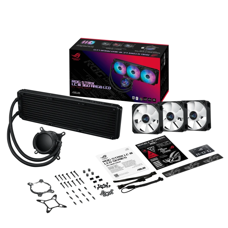 ASUS ROG STRIX LC III 360 ARGB LCD AIO cooler delivers exceptional cooling with a 360mm radiator, premium ARGB fans, 7th gen Asetek pump, and a vivid 3.5” LCD screen. Supports Intel & AMD platforms. Silent, efficient, stylish.