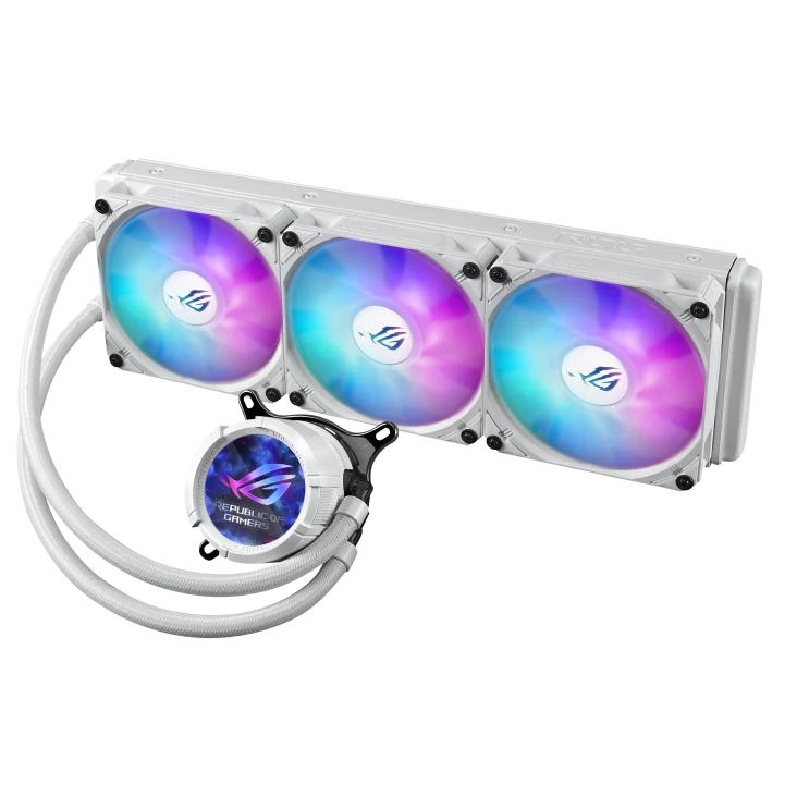 The ROG STRIX LC III 360 ARGB LCD features a new and quieter Asetek Gen7 V2 pump with updated cold plate technology capable of an additional 100 watts of cooling and temperatures up to 0.5° C lower*. Elevate CPU cooling efficiency for unmatched stability under intense workloads.
