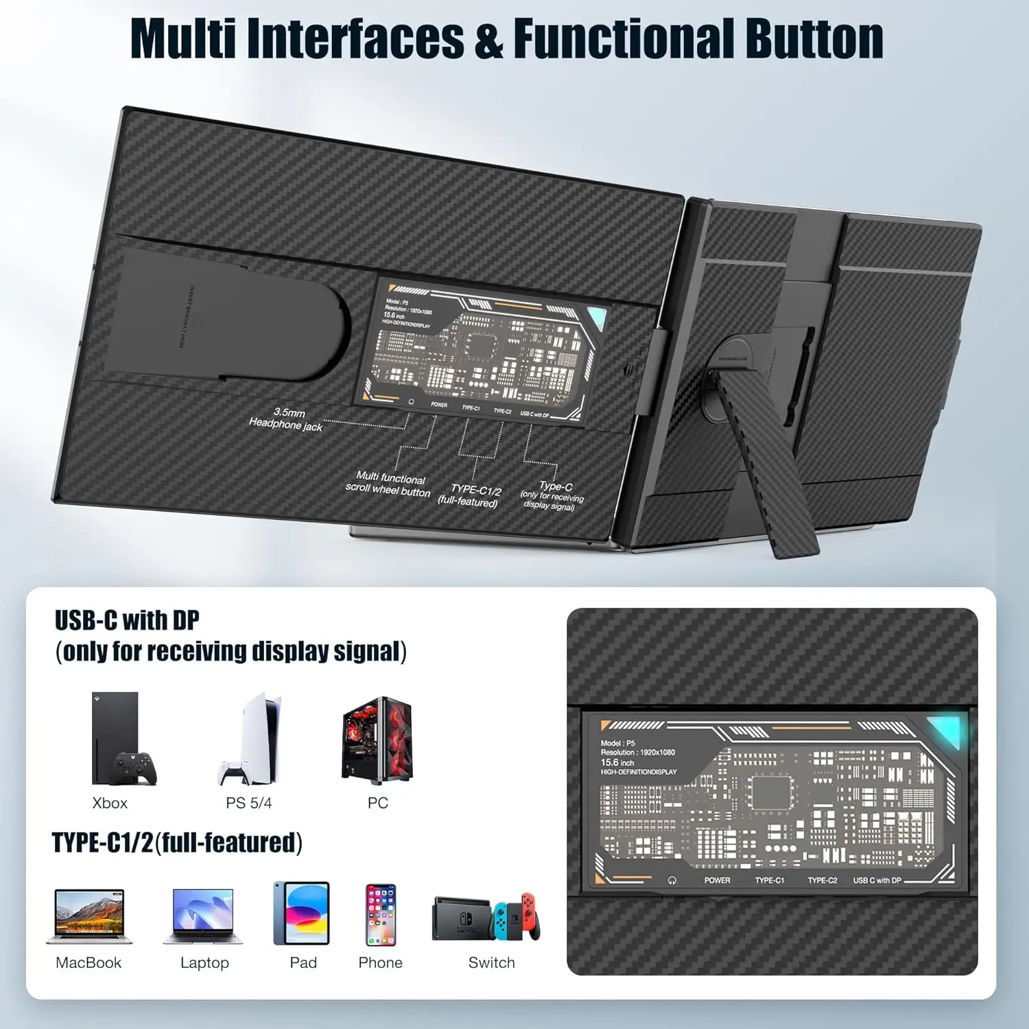 Ultra-Slim & Lightweight: P4 15.6-inch portable monitor is crafted to fit seamlessly into your laptop bag or backpack,
