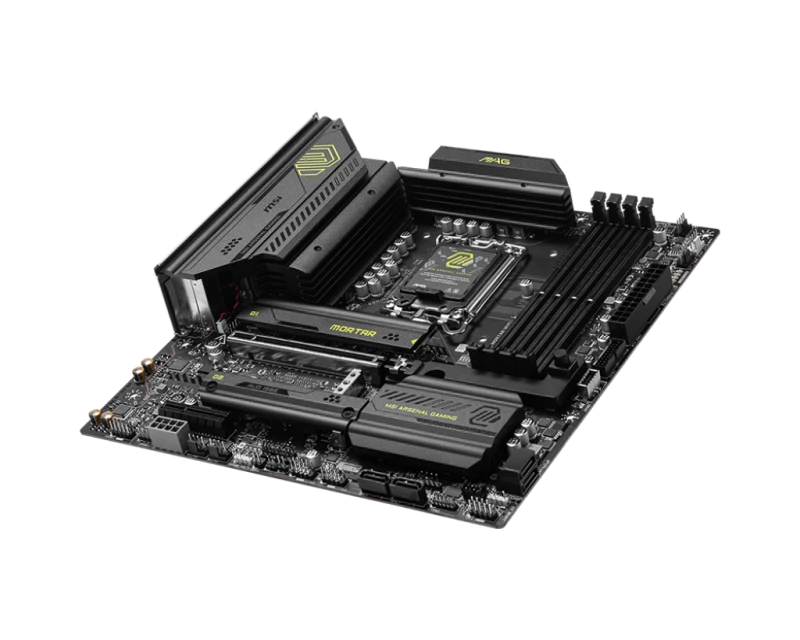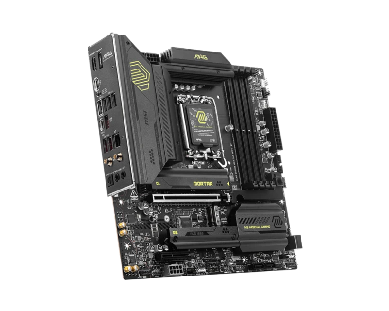 MSI MAG B860M Mortar WiFi is a powerful micro-ATX motherboard designed for 14th/13th Gen Intel LGA 1851 CPUs, powered by the Intel B860 chipset. Supports up to 256GB of high-speed DDR5 memory, PCIe 5.0 x16 graphics, and dual M.2 Gen5 NVMe SSD slots for lightning-fast storage. Equipped with next-gen Wi-Fi 7, 5G LAN, USB-C, and premium build quality for gamers, streamers, and creators.