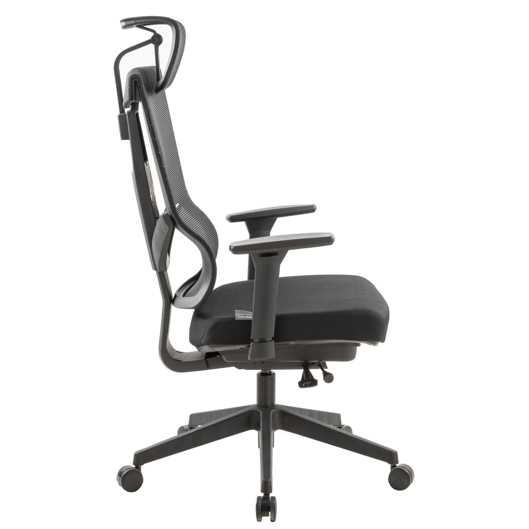 Navodesk Aero Fabric office chair in Black offers multi-adjustable seat, backrest, headrest, and armrests for superior ergonomic support. Cushioned fabric seat provides comfort for long hours of work, with breathable upholstery and sturdy construction. Equipped with smooth-rolling casters and lumbar support for enhanced productivity. Includes 3-year warranty. Free UAE delivery on orders above 499 AED.