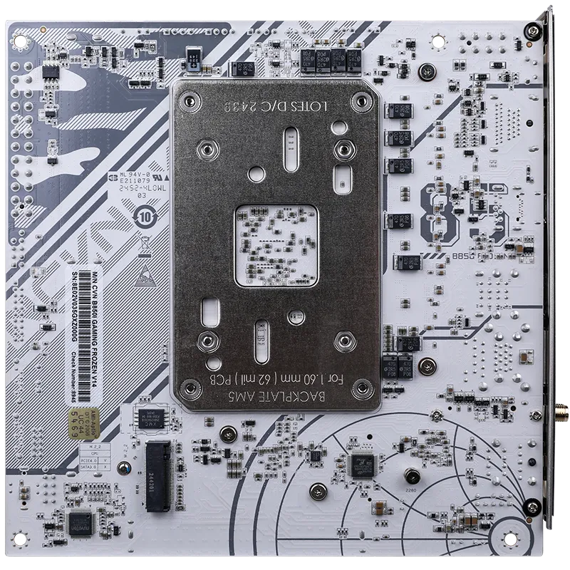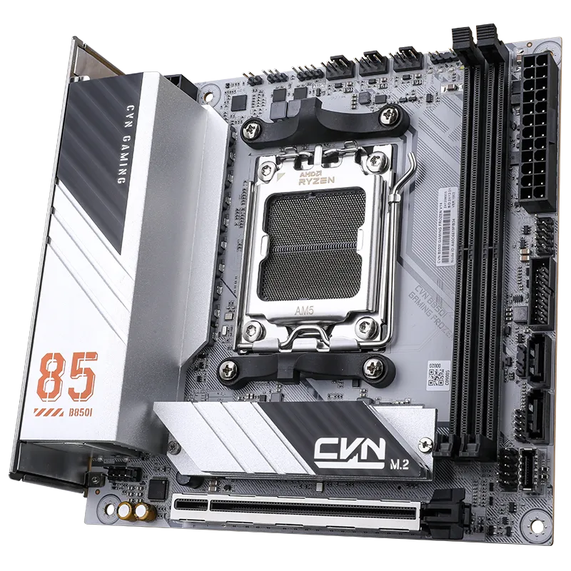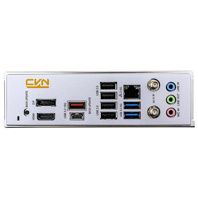 Model CVN B850I GAMING FROZEN V14 Product Series CVN series Chipset AMD B850 Processor Supports AMD Ryzen 7000/8000/9000 series processors that fit the AMD AM5 slot of the motherboard (*Please visit the Colorful official website www.colorful.cn for the latest processor support list) Memory 2 DDR5 memory sockets are provided, which can support up to 96 GB of memory (a single socket can support up to 48 GB of memory) - Support DDR5-8000(OC)/7800(OC)/7600(OC)/7400(OC)/7200(OC)/7000(OC)/6800(OC)/6600(OC)/6400(OC)/6200(OC)/6000(OC)/5800(OC)/5600(OC)/5400(OC)/5200(OC)/5000(OC)/4800MHz memory - Support Extreme Memory Profile (XMP) memory technology - Support EXtended Profiles for Overclocking (EXPO) memory technology - Supports dual channel memory technology (* Please visit www.colorful.cn for the latest memory compatibility list) SATA Ports 2 M.2 slots and 2 SATA 6Gb/s hard disk interfaces, and supports creating RAID 0, RAID 1 RAID with SATA or M.2 NVMe hard disk devices - M.2_1 slot: supports 2280 M.2 SSD (PCIe 5.0 x4, CPU channel) - M.2_2 slot: supports 2280 M.2 SSD (PCIe 4.0 x4, CPU channel) Board I/O Rear I/O : -4×USB 2.0 interfaces -2×USB 3.2 Gen 1 5Gbps Type-A interfaces -1×USB 3.2 Gen 2 10Gbps Type-A interface -1×USB 3.2 Gen 2 10Gbps Type-C interface -1×DP 1.2 interface, supporting up to 4K 60Hz resolution -1×HDMI 2.0 interface, Supports up to 4K 60Hz resolution -1×2.5G network interface -2×WiFi 6E antenna interfaces -3×audio interfaces (audio input/audio output/microphone) -1×BIOS update button On board: -1×USB 2.0 pin expandable 2 USB 2.0 Type-A interfaces -1×USB 3.2 Gen 1 pin expandable 2 USB 3.2 Gen 1 5Gbps Type-A interfaces -1×USB 3.2 Gen 2 Type-C slot expandable 1 USB 3.2 Gen 2 10Gbps Type-C interface -1×CPU fan pin -1×system fan pin -1×water cooling pump pin -2×5V 3-pin ARGB pins -1×Front audio pin -1×front panel pin -1×speaker pin -1×Clear CMOS jumper -1×POST card pin Expansion Slots 1×PCIe 5.0 x16 slot BIOS 256M UEFI, support multiple languages Power Management Support S3/S4 wake-up, network S5 wake-up, support USB wake-up, support timing boot, call boot Hardware Monitor CPU fan speed is controllable, system fan speed is controllable, CPU temperature monitoring, system temperature monitoring, and each group of voltage monitoring LAN RTL8125BG 2.5Gbit LAN, AX210 WiFi 6E wireless network card, Bluetooth 5.3 Audio Realtek ALC897 high fidelity decoding chip, Support up to 5.1 channels Configuration ITX 170 x 170 mm |