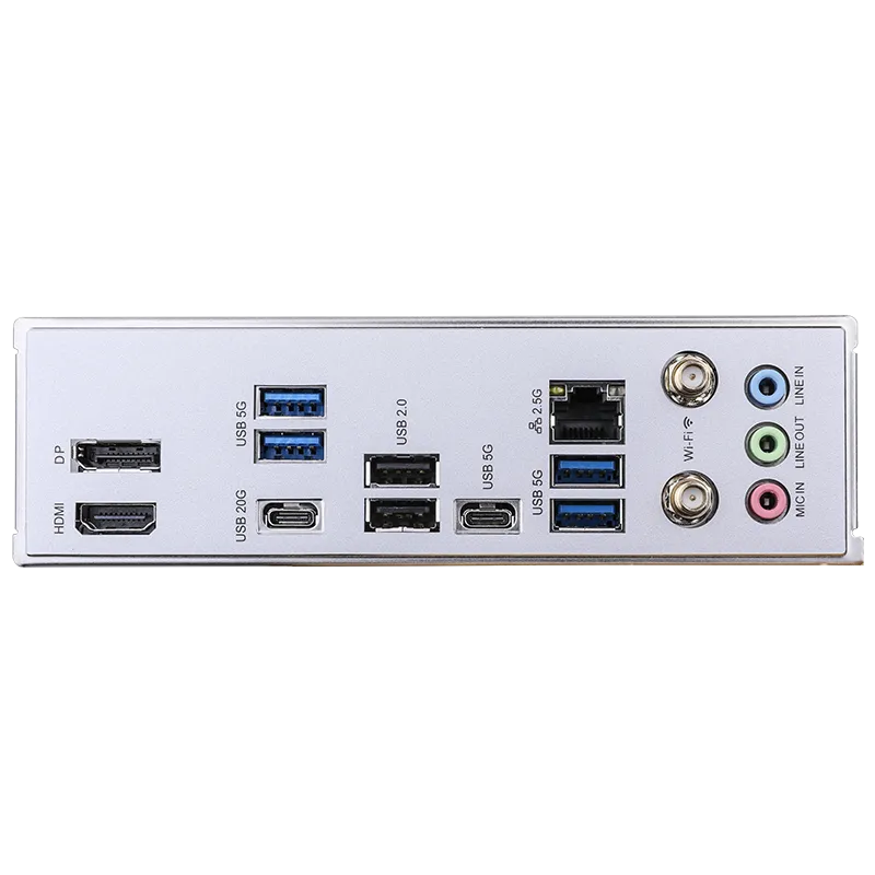 Model BATTLE-AX B860M-WHITE WIFI V20 Product Series BATTLE-AX Series Chipset Intel B860 Processor Supports Intel® Core™ Ultra processors that fit the LGA 1851 slot of the motherboard (*Please visit the Colorful official website www.colorful.cn for the latest processor support list) Memory 4 DDR5 memory slots, supporting up to 192 GB of memory (a single slot can support a capacity of up to 48 GB) - Support DDR5-7600(OC)/7400(OC)/7200(OC)/7000(OC)/6800(OC)/6600(OC)/6400/6200/6000/5800/5600/5400/5200/5000/4800MHz memory - Support Intel® Extreme Memory Profile (XMP) memory technology - Support dual channel memory technology (* Please visit www.colorful.cn for the latest memory compatibility list) SATA Ports 3 M.2 slots and 4 SATA 6Gb/s hard disk interfaces, Support the creation of RAID 0, RAID 1, RAID 5, and RAID 10 disk arrays using SATA hard disk devices - M.2_1 slot: support 2242/2260/2280 M.2 SSD (PCIe 5.0 x4, CPU channel) - M.2_2 slot: support 2242/2260/2280/22110 M.2 SSD (PCIe 4.0 x4, PCH channel) - M.2_3 slot: support 2242/2260/2280/22110 M.2 SSD (PCIe 4.0 x4, PCH channel) Board I/O Rear I/O: - 2×USB 2.0 interfaces - 4×USB 3.2 Gen 1 5Gbps Type-A interfaces - 1×USB 3.2 Gen 1 5Gbps Type-C interface - 1×USB 3.2 Gen 2x2 20Gbps Type-C interface - 1×DP 1.4 interface, Supports up to 8K 60Hz resolution - 1×HDMI 2.0 interface, Supports up to 4K 60Hz resolution - 1×2.5G network interface - 2×Wi-Fi 6 antenna interfaces - 3×Audio interfaces On board: - 2×USB 2.0 pins can expand 4 USB 2.0 Type-A interfaces - 1×USB 3.2 Gen 1 pin can expand 2 USB 3.2 Gen 1 5Gbps Type-A interfaces - 1×USB 3.2 Gen 2 Type-C slot can expand 1 USB 3.2 Gen 2 10Gbps Type-C interface - 1×CPU fan pin - 3×System fan pins - 1×Water cooling pump pin - 3×5V 3-pin ARGB pins - 1×12V 4-pin RGB pin - 1×Front audio pin - 1×Front panel pin - 1×Speaker pin - 1×COM port pin - 1×Clear CMOS jumper - 1×BIOS burner pin - 1×RGB light effect control jumper Expansion Slots 1×PCIe 5.0 x16 slot 1×PCIe 4.0 x4 slot BIOS 128M UEFI, support multiple languages Power Management Support S3/S4 wake-up, network S5 wake-up, support USB wake-up, support timing boot, call boot Hardware Monitor CPU fan speed is controllable, system fan speed is controllable (Fan1 supports independent control and Fan2 and Fan3 share control), CPU temperature monitoring, system temperature monitoring, and each group of voltage monitoring LAN RTL8125BG 2.5Gbit LAN, AX101 WiFi 6 wireless network card, Bluetooth 5.2 Audio Realtek ALC897 high fidelity decoding chip, Support up to 5.1 channels Configuration M-ATX 245 x 245 mm |