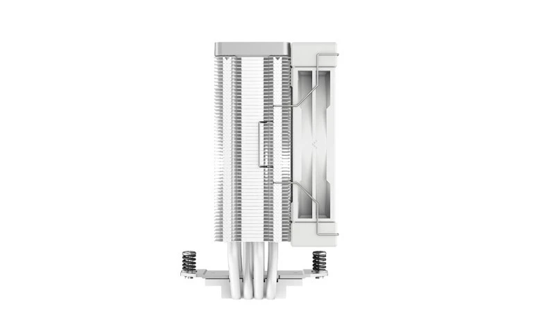 High‑performance DeepCool AK400 WH CPU cooler features a 120 mm fluid‑dynamic bearing (FDB) fan (500–1850 RPM, ≤29 dB), supported by four direct‑contact 6 mm copper heat‑pipes and a unique matrix fin design. Offers efficient 220 W TDP cooling, full white aesthetic, and universal Intel/AMD socket support.