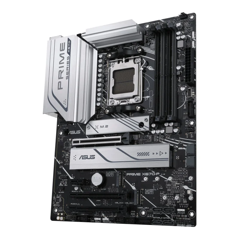 ASUS PRIME X670-P is an advanced ATX motherboard powered by the AMD X670 chipset, supporting the latest AM5 socket and Ryzen 7000 processors. It offers support for up to 128GB DDR5 RAM, four ultra-fast M.2 slots with PCIe 5.0, and integrated Wi-Fi 6 for high-speed wireless connectivity. Designed for builders and enthusiasts, it features robust power delivery, efficient cooling, HDMI & DisplayPort output, and ASUS 5X Protection for ultimate durability and performance.