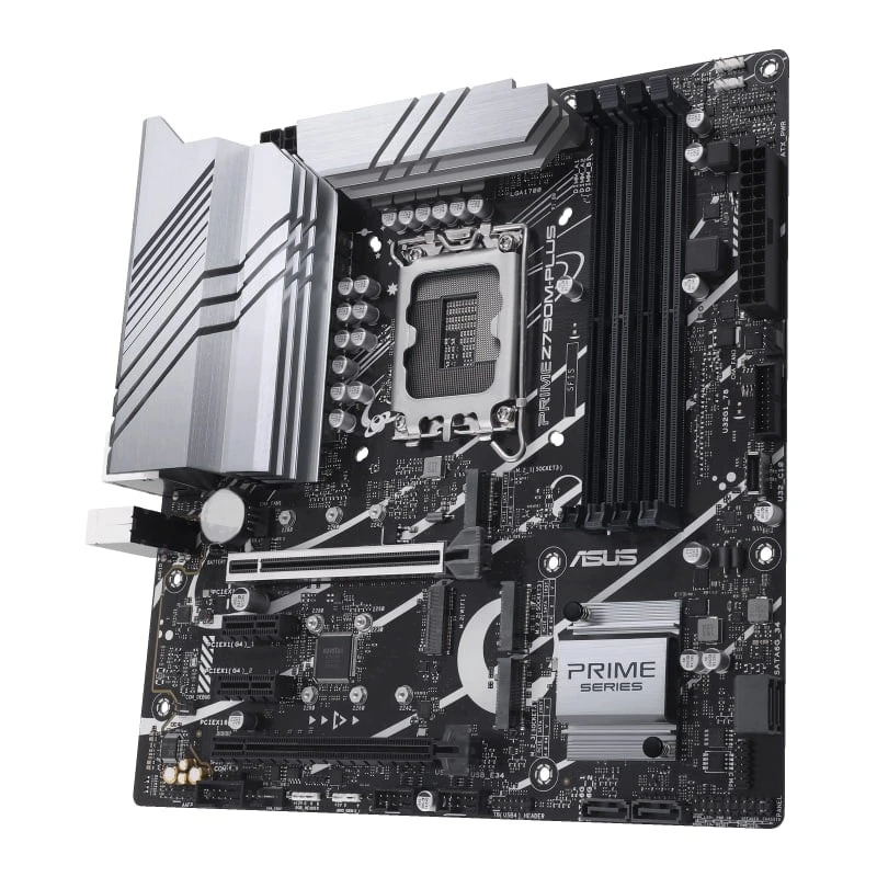 The Asus PRIME Z790M-PLUS motherboard delivers high-performance and versatility for Intel-based systems. Featuring the Intel LGA1700 socket, it fully supports Intel 12th and 13th Gen CPUs for blazing-fast processing. With 4 x DDR5 DIMM slots, the motherboard accommodates up to 192GB of ultra-fast memory, ideal for heavy multitasking, gaming, and content creation. PCIe 5.0 and M.2 slots provide lightning-fast data transfer, ensuring faster boot times, game loads, and file transfers. Equipped with USB 3.2 Gen 2 and Intel Z790 chipset, the Z790M-PLUS guarantees high-speed connectivity, perfect for demanding applications. Built with advanced cooling features and AI noise-canceling audio, this motherboard offers stable performance, even under heavy loads. Ideal for building powerful Intel-based workstations or gaming PCs, the Asus PRIME Z790M-PLUS is engineered for users who demand cutting-edge performance and reliability.