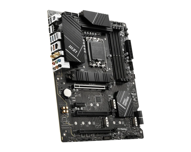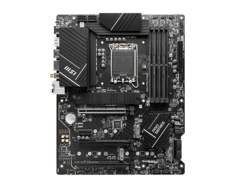 MSI PRO Z790-P WIFI ATX motherboard supports Intel 12th–13th Gen LGA 1700 CPUs, Intel Z790 chipset, 4× DDR5 slots up to 192GB, 4× M.2 NVMe SSDs, PCIe 5.0 x16, Intel Wi-Fi 6E, 2.5Gb Ethernet, multiple USB 3.2 Gen 2 ports — reliable, high-performance solution for professionals and gamers.