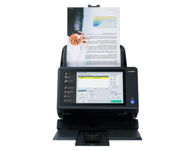 Canon ScanFront 400 is a standalone A4 network scanner offering up to 45 pages per minute (90 images per minute duplex) with a 60-sheet ADF and exceptional reliability for high-volume scanning. Featuring a large 10.1″ touchscreen, USB 2.0 and Gigabit Ethernet connectivity, it enables PC-free routing to email, FTP, USB, network folders or printers. With intelligent image processing, long document mode (up to 3 metres), passport support, double-feed detection, and folio scanning, it's ideal for professional environments like banking, healthcare, and legal