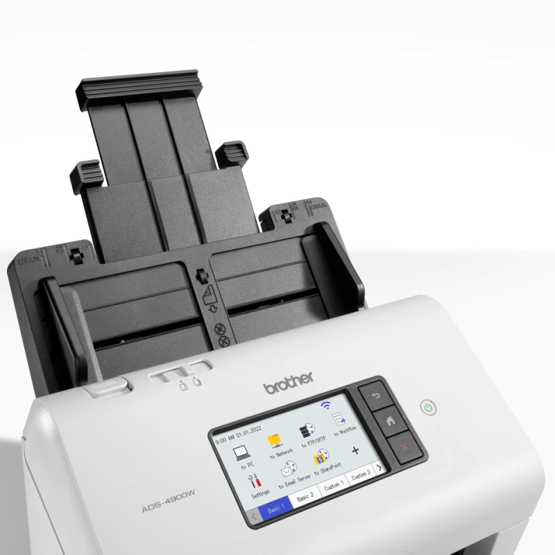 The Brother ADS‑4900W professional desktop scanner delivers high-speed batch scanning at up to 60 ppm or 120 ipm duplex with a 100‑sheet ADF. Featuring advanced connectivity options—USB 3.0, Wi‑Fi (dual-band), Ethernet—and a 4.3″ color touchscreen with up to 56 customizable shortcuts. Built-in ultrasonic multifeed detection prevents jams, barcode routing automates workflows, and triple-layer security keeps documents and network safe. With 600 dpi optical resolution, robust driver support, and ENERGY STAR & EPEAT Silver certifications, it’s ideal for workgroups, law firms, healthcare and high-volume office environments.