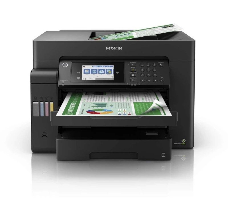 The Epson EcoTank L15150 is a versatile A3 all-in-one ink tank printer featuring print, copy, and scan functions with wireless Wi-Fi connectivity. It offers automatic duplex printing, ultra-low running costs, and high-capacity ink tanks for long-lasting use. Delivering sharp prints with excellent color accuracy and fast performance, this printer is ideal for small businesses and offices requiring reliable, efficient printing with flexible connectivity options including USB and Ethernet.