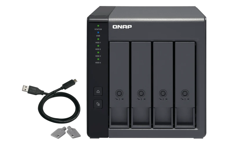 The TR-004 USB 3.2 Gen 1 RAID expansion enclosure allows you to expand the capacity of your QNAP NAS and PC. The TR-004 can also be utilized as a DAS (Direct-attached Storage) device, allowing you to directly access its content just by connecting it via USB. The TR-004 features four 3.5-inch SATA drive bays with multiple RAID configuration options and USB 3.2 Gen 1 Type-C connectivity to bring you a highly reliable and secure storage capacity expansion solution.
