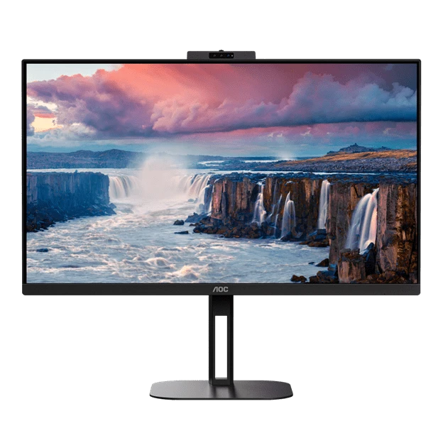 The AOC Q27V5CW, 27” IPS panel with QHD resolution(2560 x 1440), video calling, 75Hz Refresh Rate, 1ms, USB-C, AMD FreeSync, Display Port and HDMI, Flicker Free, Built-in speakers, Frameless design, Height adjustable Stand | Q27V5CW/BK