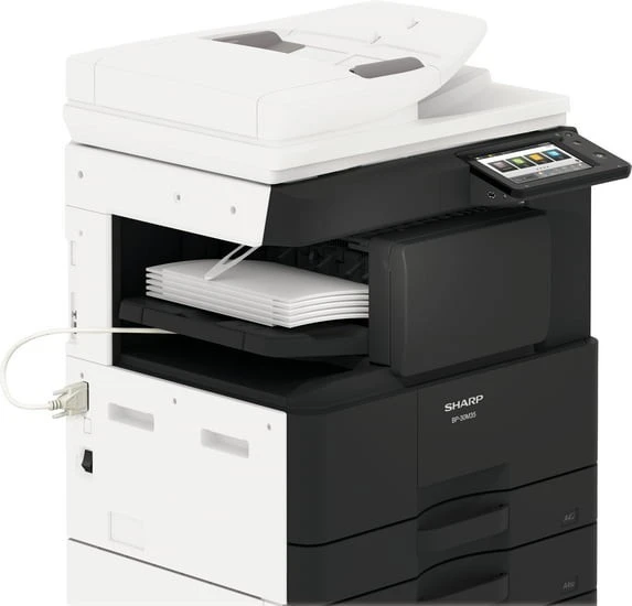 The Sharp BP-30M35 is a high-performance A3 monochrome multifunction photocopier designed for medium to large workgroups. Delivering fast 35 pages per minute printing speed, it offers powerful functionality including printing, copying, scanning, faxing, and document filing. With its advanced security features, intuitive operation panel, and seamless connectivity via USB and Ethernet, the BP-30M35 ensures productivity, data protection, and cost-efficiency in busy office environments.