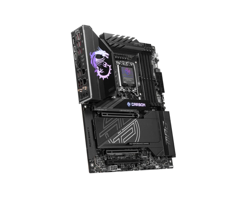 The MSI MPG Z890 CARBON WIFI is a premium ATX gaming motherboard built for Intel Core Ultra processors on the LGA 1851 socket and Z890 chipset. It supports up to 256 GB DDR5 memory at 9200 MT/s (OC), PCIe 5.0 x16 graphics, one Gen 5 + four Gen 4 M.2 SSD slots, Thunderbolt 4, next-gen connectivity with Wi‑Fi 7, 5G + 2.5G LAN, and high-end thermal design with Frozr AI Cooling. Ideal for hardcore gamers, content creators, and future-proof builds, delivering power, speed, and reliability.