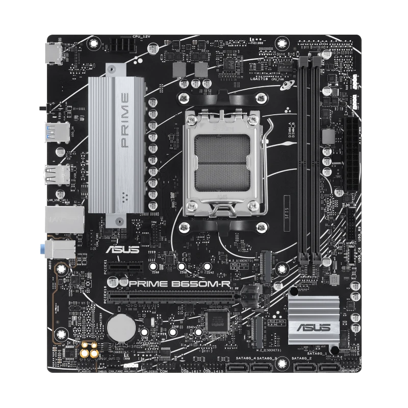 ASUS PRIME B650M-R is a reliable Micro-ATX motherboard for AMD AM5 socket. Supports DDR5 memory up to 128GB, PCIe 4.0, dual M.2 slots for NVMe SSDs, HDMI and VGA video outputs, USB 3.2 Gen 1, and solid build quality. Ideal for compact productivity and gaming builds.