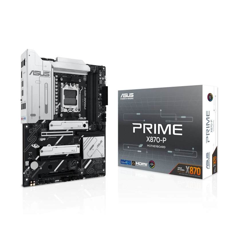 ASUS Prime series motherboards are expertly engineered to unleash the full potential of AMD Ryzen™ 9000 series processors. Boasting a robust power design, comprehensive cooling solutions and intelligent tuning options, the PRIME X870-P motherboard provides users and PC DIY builders with a range of performance optimizations via intuitive software and firmware features. It's designed to be Advanced AI PC-ready, offering the power and connectivity needed for demanding AI applications.