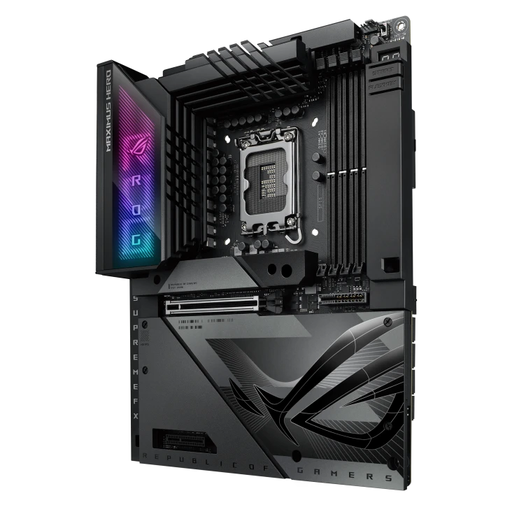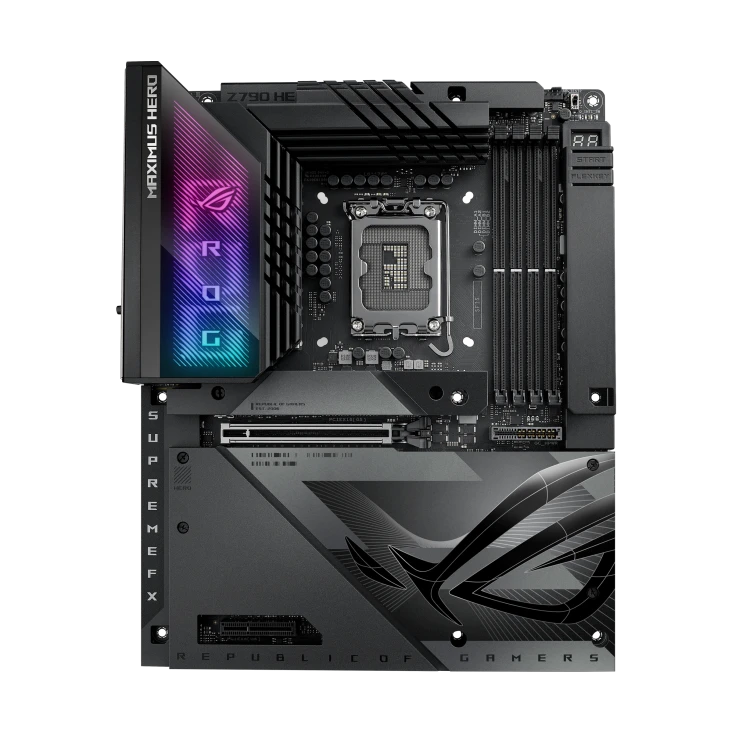 ROG Maximus Z790 Hero BTF is the first ROG motherboard with a hidden-connector design and graphics card high-power slot that delivers up to 600 watts of power for BTF graphics cards through the motherboard, providing an unprecedented level of cable management to PC DIY enthusiasts. It also boasts robust cooling, WiFi 7 and ample PCIe® 5.0 slots for unmatched performance, plus full compatibility with 14th Gen Intel® Core™ processors. This platform delivers the power and connectivity that advanced AI PC applications demand.