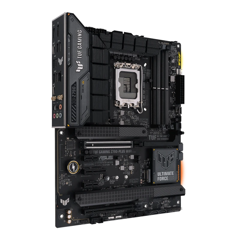 TUF GAMING Z790-PLUS WIFI takes all the essential elements of the latest Intel® processors and combines them with game-ready features and proven durability. Engineered with military-grade components, an upgraded power solution and a comprehensive cooling system, this motherboard goes beyond expectations with rock-solid performance for marathon gaming. TUF GAMING motherboards also undergo rigorous endurance testing to ensure that they can handle conditions where others may fail. Aesthetically, this model incorporates an embossed nameplate and geometric design elements to reflect the dependability and stability that defines the TUF GAMING series. This platform delivers the power and connectivity that advanced AI PC applications demand.