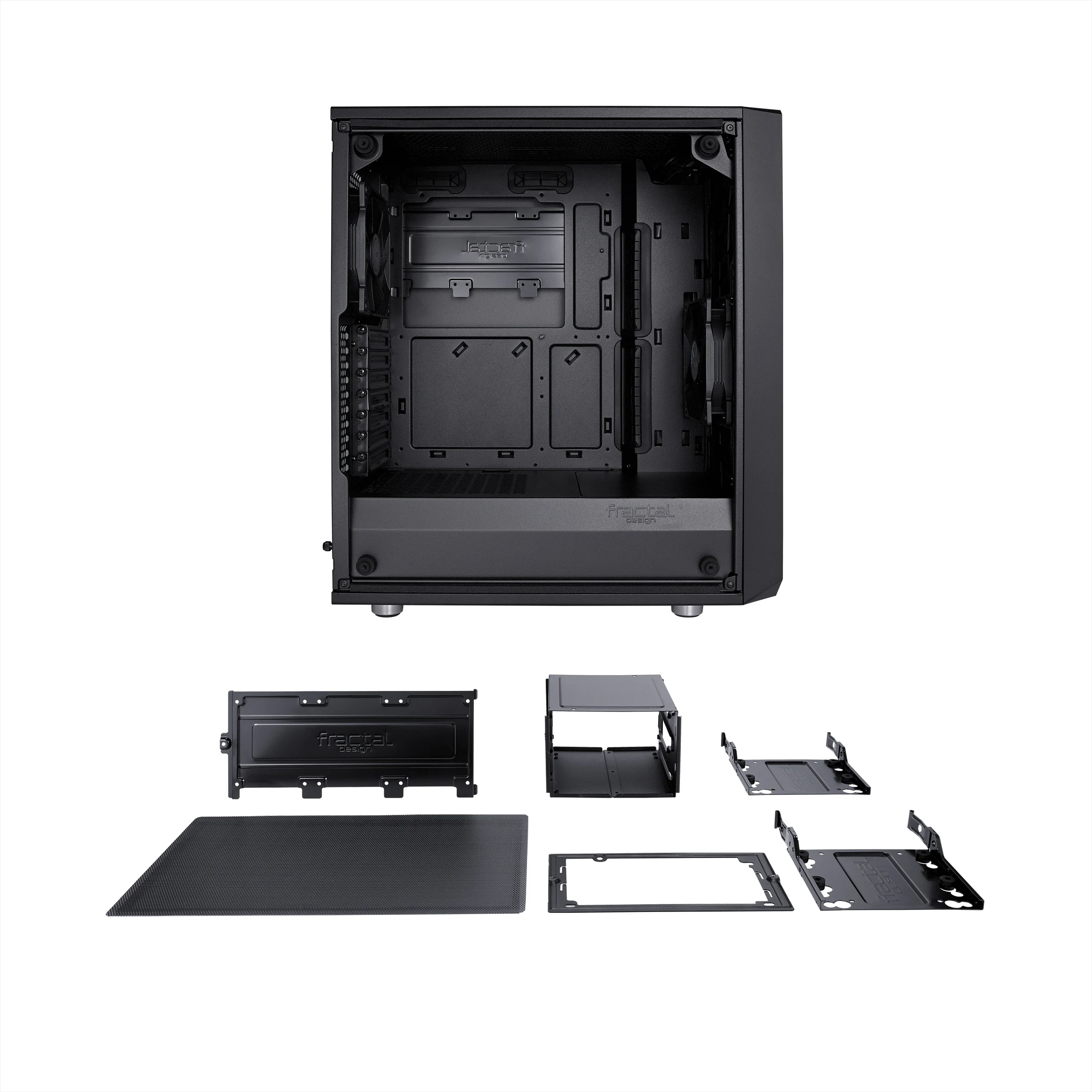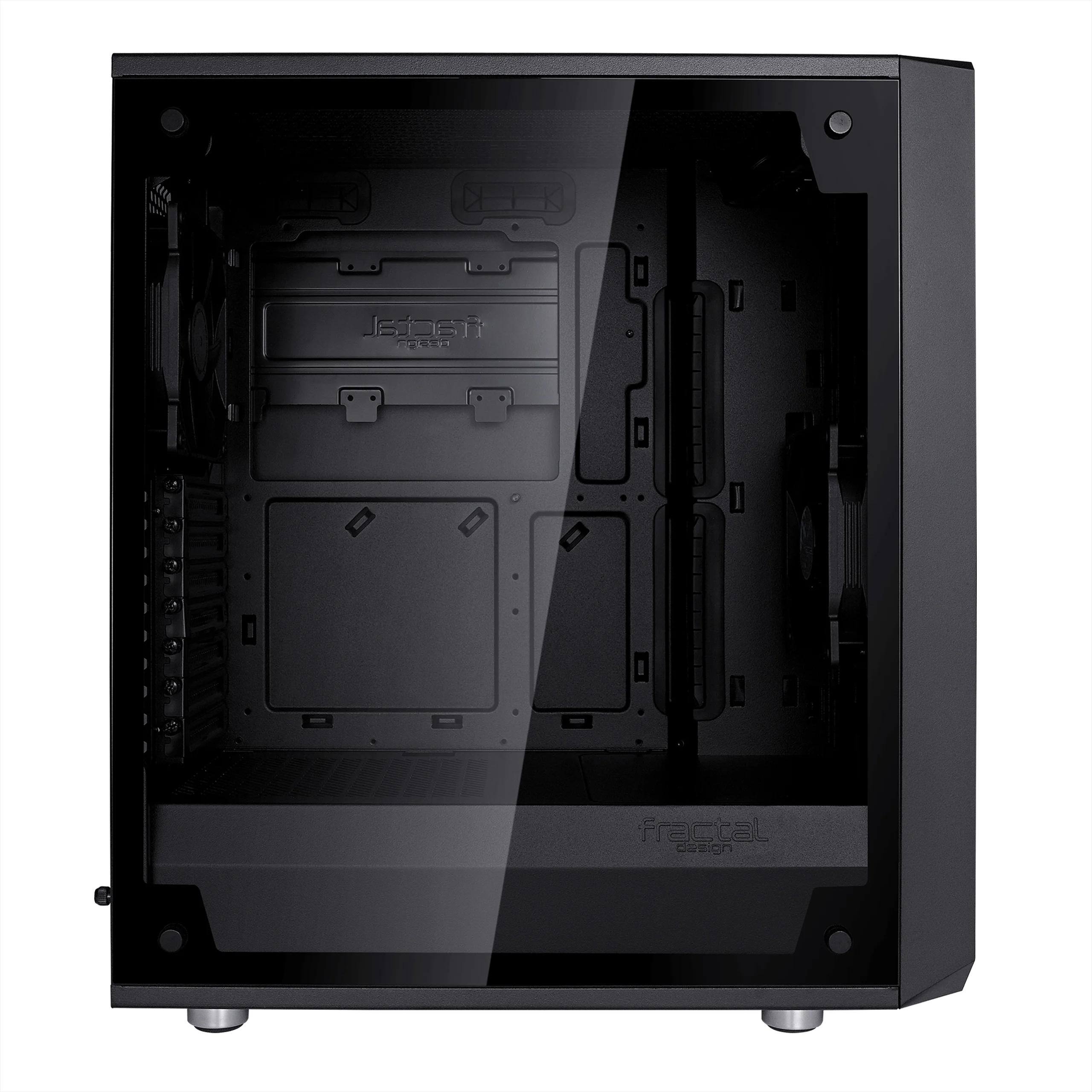 An open ATX layout with intelligent space utilization creates an unrestricted airflow path from the mesh front intakes directly through key components to exhaust, ensuring heat is never an issue. The Meshify C has a remarkably compact footprint with the high-end component support of a larger tower, and with seven fan mounts and multi-radiator liquid cooling capability, it has the cooling capacity to match.
