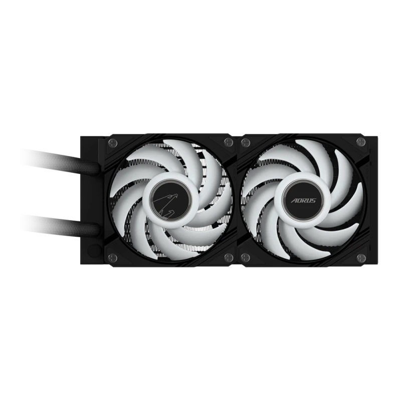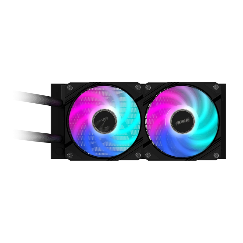 Brand: Gigabyte AORUS Model: WATERFORCE II 240 MPN: GP-AORUS WATERFORCE II 240 Radiator Dimensions: 277 × 119 × 27 mm (Aluminum) Fans: 2 × 120 mm ARGB, Hydraulic Bearing Fan Speed: 800 – 2300 RPM ±10% Fan Airflow: 64.95 CFM Fan Noise Level: 12.8 – 36.9 dBA Fan Pressure: 2.93 mm H₂O Pump Speed: 1600 – 3400 RPM ±10% Block Dimensions: 72.8 × 72.8 × 65.1 mm Cold Plate: Copper Block Rotation: 330° Rotatable Display Tubing Length: 380 mm, sleeved Socket Compatibility: