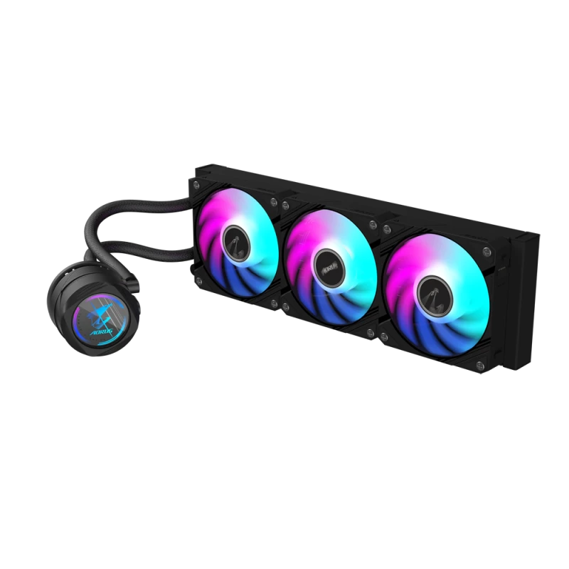 High-efficiency 360 mm AIO liquid cooler with Fan EZ‑Chain daisy‑chain ARGB fans, 330° rotatable block, graphene-infused blades, and universal AM5/LGA1851 socket support. Delivers low-noise, DIY-friendly installation, superior thermal performance, and vibrant customizable lighting — ideal for gaming and enthusiast builds.