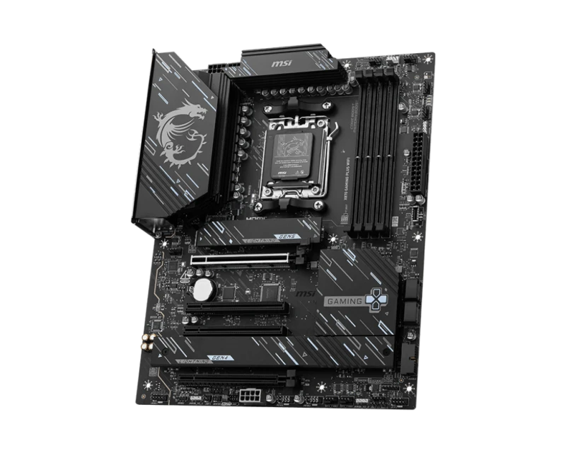MSI X870 GAMING PLUS WiFi ATX motherboard supports AMD AM5 socket with X870 chipset, offering up to 256GB DDR5 memory and PCIe 5.0 x16 for next-gen graphics. Features 3x Gen5 M.2 slots for ultra-fast NVMe SSDs, Wi-Fi 7, and 2.5G LAN for superior connectivity. Ideal for gaming, content creation, and high-performance PC builds.