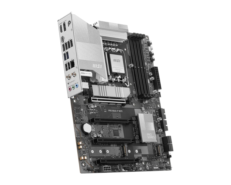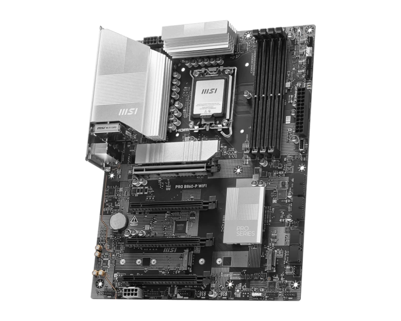 MSI PRO B860-P WiFi is a high-performance ATX motherboard for Intel 14th/13th Gen LGA 1851 processors, featuring the Intel B860 chipset. Supports up to 256GB DDR5 memory across 4 slots, four PCIe x16 expansion slots, and three M.2 Gen4 NVMe SSD slots. Includes WiFi 7, Bluetooth 5.3, USB-C, and robust connectivity options ideal for gaming, streaming, and professional use.