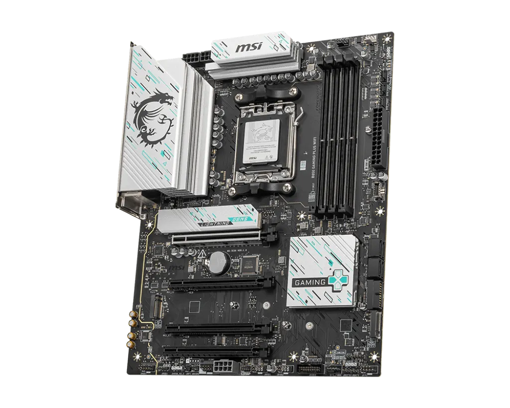 MSI B850 Gaming Plus WiFi is a high-performance ATX motherboard for AMD Ryzen 8000/7000 series on AM5 socket, featuring support for ultra-fast DDR5 8200+MT/s (OC), PCIe 5.0 x16 graphics, and Gen5 M.2 NVMe SSDs. Built with next-gen Wi-Fi 7 and 5G LAN for blazing-fast connectivity. Includes USB-C, robust power delivery, and advanced thermal design, perfect for gaming and productivity builds.