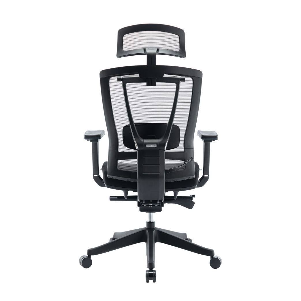 Navodesk HALO premium ergonomic chair, responsive lumbar support, breathable mesh back, cushioned fabric seat, adjustable seat height, headrest, armrests, backrest, five‑position seat tilt lock, Donati mechanism, BIFMA certified for posture support and fatigue relief.