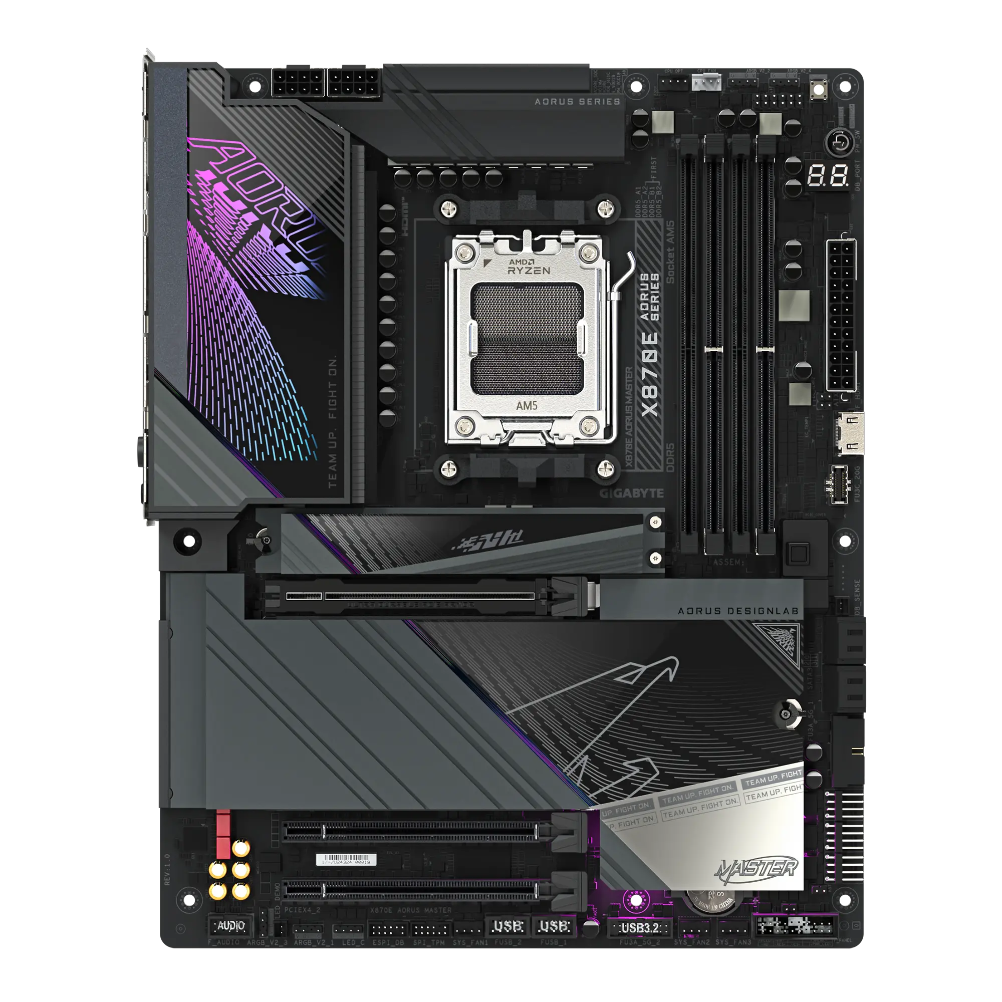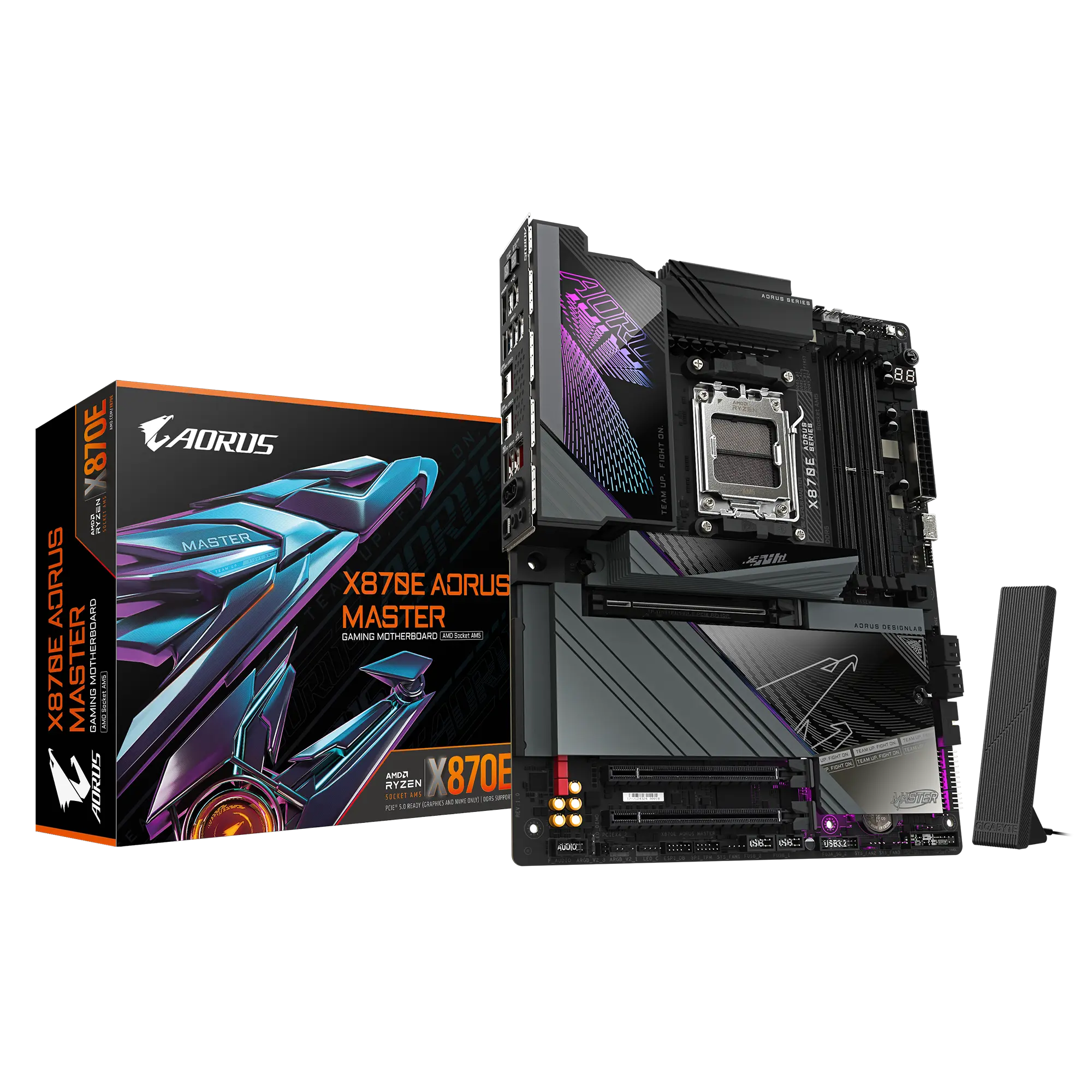 Gigabyte X870E AORUS MASTER is a high-end ATX motherboard for AMD Ryzen AM5 processors, featuring ultra-fast DDR5 memory up to 8600MT/s, four PCIe 5.0 x4 M.2 slots, advanced Digital Twin VRM power design for stable overclocking, next-gen Wi-Fi 7, and 5Gb Ethernet for high-speed connectivity. Perfect for enthusiasts and professional gamers.