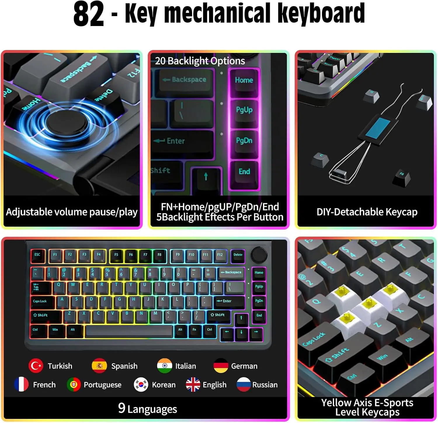 82-Key Mechanical Keyboard: Ensures optimal user experience and visibility for screen expansion.