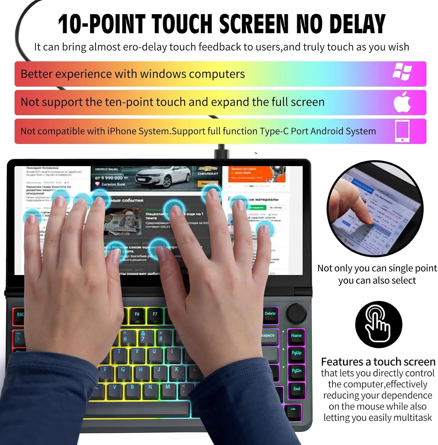 Zero-Latency Touch: 10-point touch for Windows, single-point touch for Mac OS.
