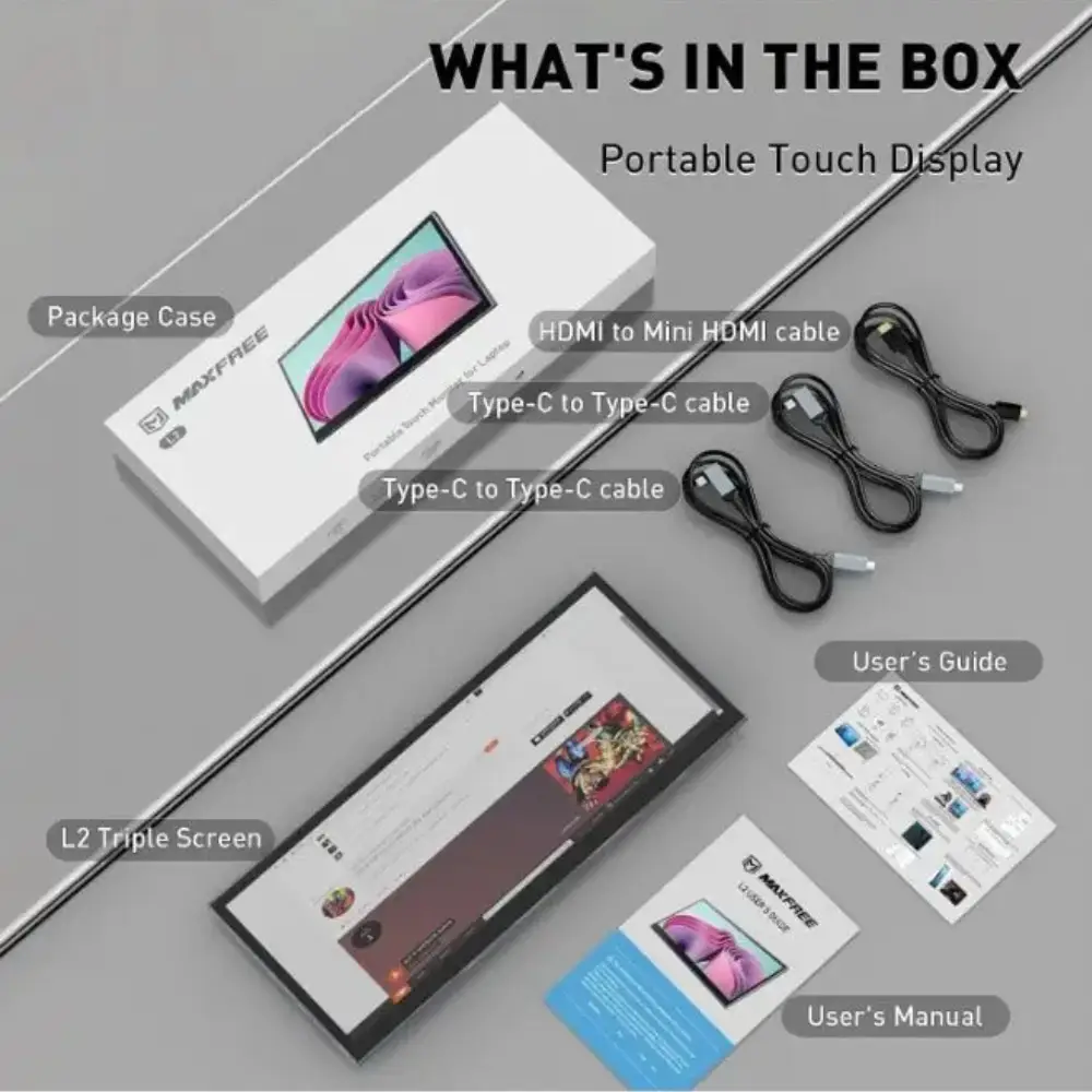 The L2 Portable Touchscreen Laptop Screen Extender is a versatile 13" IPS display that offers a 60Hz refresh rate, multiple connectivity options including Type-C and HDMI, and a durable aluminum design. Perfect for enhancing productivity and entertainment on the go, it features a 10-point multi-touch interface and is compatible with a wide range of devices, making it an essential tool for modern professionals.