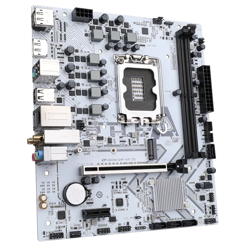 Model BATTLE-AX H610M-GHA WIFI D5 V20 Product Series BATTLE-AX series Chipset Intel H610 Processor Support the 14th/13th and 12th generation Intel adapting to the LGA 1700 slot of the motherboard ® Core TM, Pentium ® And Cylon ® processor (*Please visit the Colorful official website www.colorful.cn for the latest processor support list) Memory 2 DDR5 memory sockets are provided, which can support up to 96 GB of memory (a single socket can support up to 48 GB of memory) Paired with 13th generation Intel ® Core ™ i9/i7 processors: - Support DDR5-5600/5400/5200/5000/4800MHz memory Paired with 13th generation Intel ® Core ™ i5/i3 processors and 12th generation Intel ® Core ™、Pentium ® And Cylon ® processors - Support DDR5-4800MHz memory - Supports dual channel memory technology (* Please visit www.colorful.cn for the latest memory compatibility list) SATA Ports 1 M.2 slot and 4 SATA 6Gb/s hard disk interfaces - M.2_1 slot: supports 2242/2280 M.2 SSD (PCIe 3.0 x4, PCH channel) Board I/O Rear I/O : -4×USB 2.0 interfaces -2×USB 3.2 Gen 1 Type-A interfaces -2×DP 1.2 interfaces, supports up to 4K 60Hz resolution -1×HDMI 2.0 interface, supports up to 4K 60Hz resolution -1×PS/2 interface -1×2.5G network interface -2×Wi-Fi 6 antenna interfaces -3×Audio interfaces (audio input/audio output/microphone) On board: -1×CPU fan pin -2×System fan pins -1×USB 2.0 pin expandable 2 USB 2.0 Type-A interfaces -1×USB 3.2 Gen 1 pin expandable 2 USB 3.2 Gen 1 Type-A interfaces -2×5V 3-pin ARGB pins -1×12V 4-pin RGB pin -1×Front audio pin -1×Front panel pin -1×Speaker pin -1×Clear CMOS jumper -1×BIOS burner pin -1×RGB light effect control jumper -1×COM port pin Expansion Slots 1×PCIe 4.0 x16 slot 1×PCIe 3.0 x1 slot BIOS 128M UEFI, support multiple languages Power Management Support S3/S4 wake-up, network S5 wake-up, support USB wake-up, support timing boot, call boot Hardware Monitor CPU fan speed is controllable, system fan speed is controllable, CPU temperature monitoring, system temperature monitoring, and each group of voltage monitoring LAN RTL8125BG 2.5Gbit LAN, AX101 WiFi 6 wireless network card, Bluetooth 5.2 Audio Realtek ALC897 high fidelity decoding chip, Support up to 5.1 channels Configuration M-ATX 225mm x 195mm |