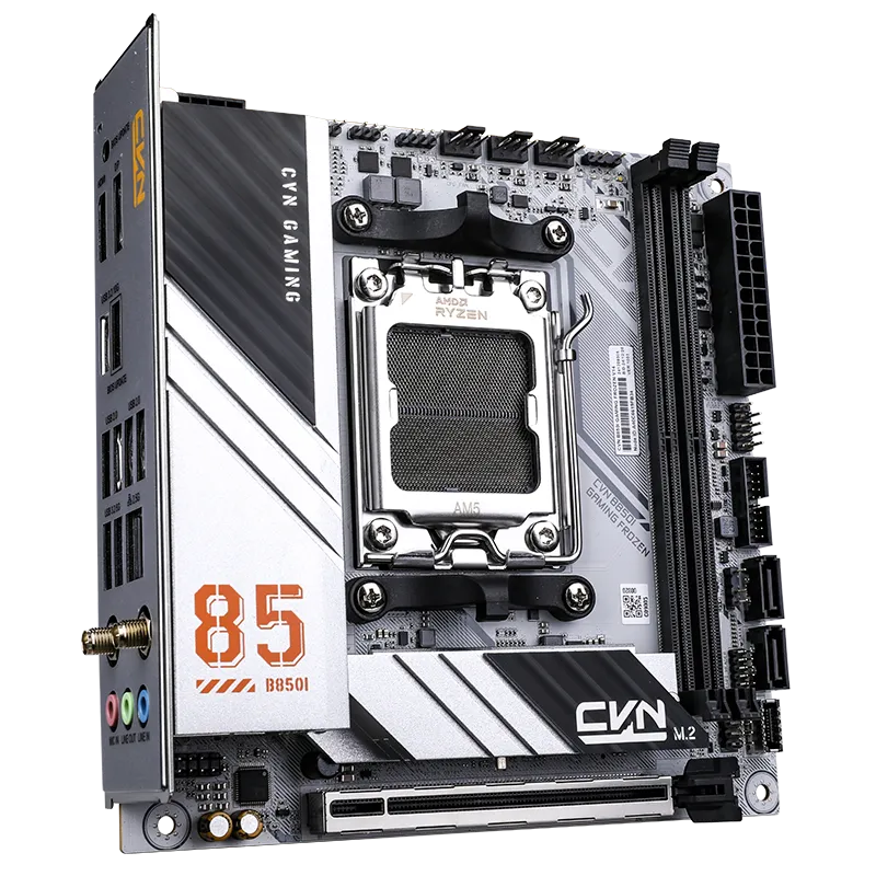 Model CVN B850I GAMING FROZEN V14 Product Series CVN series Chipset AMD B850 Processor Supports AMD Ryzen 7000/8000/9000 series processors that fit the AMD AM5 slot of the motherboard (*Please visit the Colorful official website www.colorful.cn for the latest processor support list) Memory 2 DDR5 memory sockets are provided, which can support up to 96 GB of memory (a single socket can support up to 48 GB of memory) - Support DDR5-8000(OC)/7800(OC)/7600(OC)/7400(OC)/7200(OC)/7000(OC)/6800(OC)/6600(OC)/6400(OC)/6200(OC)/6000(OC)/5800(OC)/5600(OC)/5400(OC)/5200(OC)/5000(OC)/4800MHz memory - Support Extreme Memory Profile (XMP) memory technology - Support EXtended Profiles for Overclocking (EXPO) memory technology - Supports dual channel memory technology (* Please visit www.colorful.cn for the latest memory compatibility list) SATA Ports 2 M.2 slots and 2 SATA 6Gb/s hard disk interfaces, and supports creating RAID 0, RAID 1 RAID with SATA or M.2 NVMe hard disk devices - M.2_1 slot: supports 2280 M.2 SSD (PCIe 5.0 x4, CPU channel) - M.2_2 slot: supports 2280 M.2 SSD (PCIe 4.0 x4, CPU channel) Board I/O Rear I/O : -4×USB 2.0 interfaces -2×USB 3.2 Gen 1 5Gbps Type-A interfaces -1×USB 3.2 Gen 2 10Gbps Type-A interface -1×USB 3.2 Gen 2 10Gbps Type-C interface -1×DP 1.2 interface, supporting up to 4K 60Hz resolution -1×HDMI 2.0 interface, Supports up to 4K 60Hz resolution -1×2.5G network interface -2×WiFi 6E antenna interfaces -3×audio interfaces (audio input/audio output/microphone) -1×BIOS update button On board: -1×USB 2.0 pin expandable 2 USB 2.0 Type-A interfaces -1×USB 3.2 Gen 1 pin expandable 2 USB 3.2 Gen 1 5Gbps Type-A interfaces -1×USB 3.2 Gen 2 Type-C slot expandable 1 USB 3.2 Gen 2 10Gbps Type-C interface -1×CPU fan pin -1×system fan pin -1×water cooling pump pin -2×5V 3-pin ARGB pins -1×Front audio pin -1×front panel pin -1×speaker pin -1×Clear CMOS jumper -1×POST card pin Expansion Slots 1×PCIe 5.0 x16 slot BIOS 256M UEFI, support multiple languages Power Management Support S3/S4 wake-up, network S5 wake-up, support USB wake-up, support timing boot, call boot Hardware Monitor CPU fan speed is controllable, system fan speed is controllable, CPU temperature monitoring, system temperature monitoring, and each group of voltage monitoring LAN RTL8125BG 2.5Gbit LAN, AX210 WiFi 6E wireless network card, Bluetooth 5.3 Audio Realtek ALC897 high fidelity decoding chip, Support up to 5.1 channels Configuration ITX 170 x 170 mm |